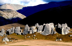 Descending into the valleys of the Waimakariri this drive offers some spectacular views of the braided river valleys. Castle Hill Scenic Reserve sits in limestone country and the area is dotted with remarkable rock outcrops. A popular place with climbers it was also an important place for Maori in past years as they provided shelter on their seasonal journeys between the coasts. There is a network of walking paths allowing you to explore.