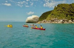 Awaroa is the perfect base to start a half day sea kayak adventure with immediate access to the Tonga Island Marine Reserve and the Awaroa Lagoon, both offering top class sea kayaking with a remote feel. The marine reserve trip explores the bays south of Awaroa with views of stunning granite sea cliffs, marine life thriving in a pristine marine ecosystem and sea birds diving and foraging for food. The lagoon offers sheltered paddling conditions with stunning scenery, secluded beaches, the chance to see eagle rays feeding on the sea floor and a range of sea birds feeding on the sandy banks.