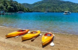 This day is free to explore the Lodge grounds at your own pace. You have complimentary access to 11 acres of scenic art and nature trails winding through native bush, as well as the chance to join popular daily animal education and feeding tours to meet the native Kākariki parakeets, Kunekune pigs, and eels. Feel free to grab a paddle and use the free kayaks and stand-up paddleboards (SUPs) in the sheltered bay, or simply relax on the beach. Should you wish to enhance your day, you have several exciting optional activities available at Lochmara: book a private relaxation session in the secluded Bathhouse, or purchase a Queen Charlotte Track Pass (required for access to the longer hiking and biking sections, such as the Onahau Lookout). Please reach out to your travel specialist prior to arrival to secure your booking. Delicious meals and snacks are available throughout the day at the licensed waterfront café.